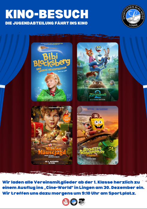 Alle Vereinsmitglieder ab der 1. Klasse sind am 30. Dezember zu einem Ausflug ins Cino-World Lingen eingeladen.